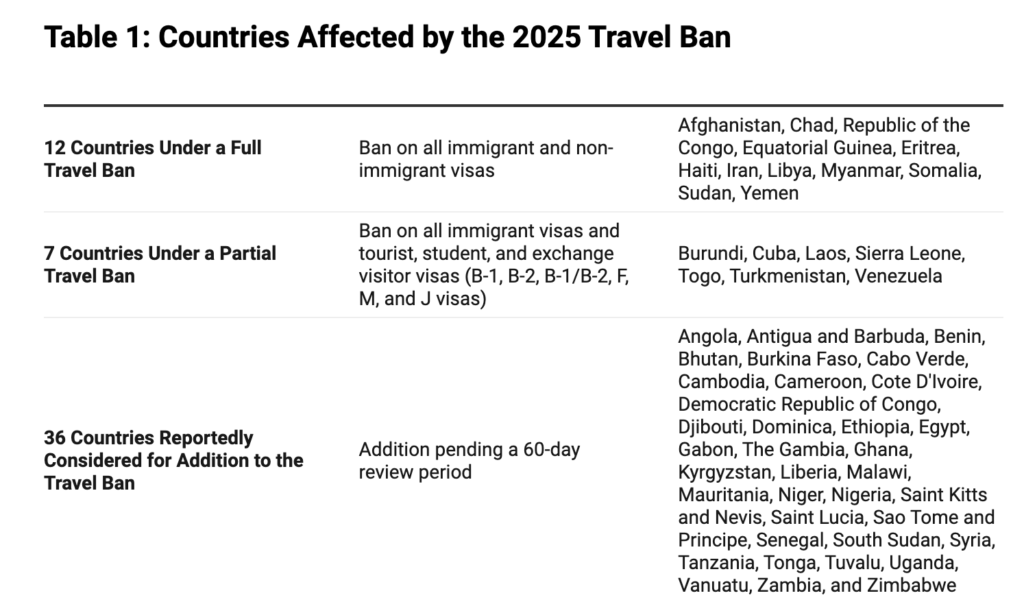 December 8, 2025: Trump Administration announced Immigration Process Paused for Travel Ban Countries, including a halt on asylum decisions for all nationalities, an indefinite pause on decisions for all immigration processes for nationals of the 19 countries named in the June 4 travel ban (“travel ban countries”), the re-examination of hundreds of thousands of individuals in legal status, and the suspension of all visas for people traveling on Afghan passports.